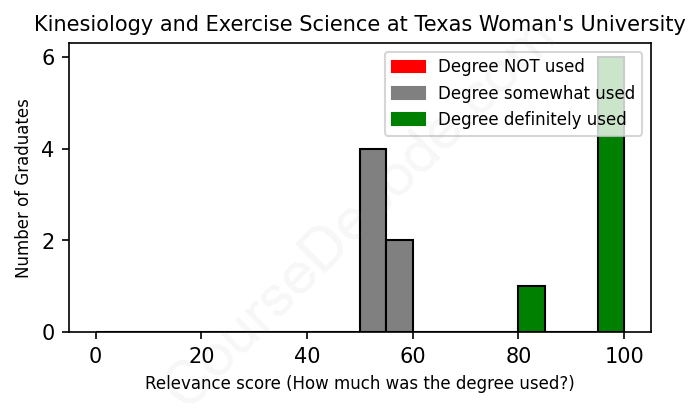 First, some facts. Of the Kinesiology and Exercise Science graduates from Texas Woman's University we've analyzed , here's how many have used (or NOT used) their degree in their career: