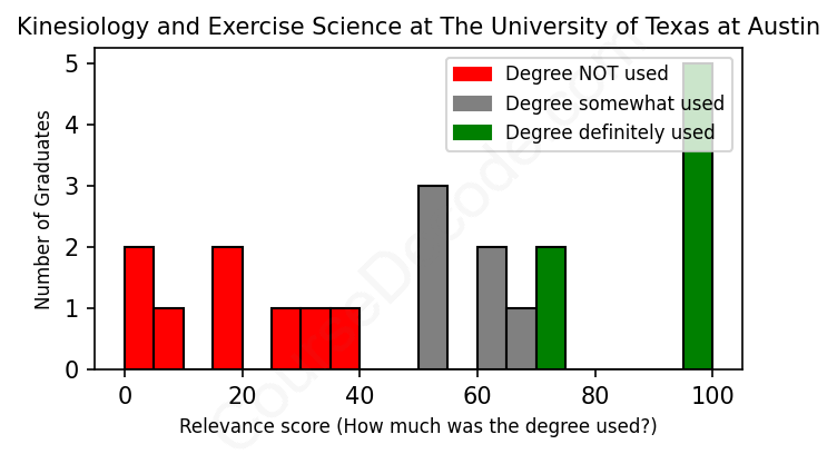 First, some facts. Of the Kinesiology and Exercise Science graduates from The University of Texas at Austin we've analyzed , here's how many have used (or NOT used) their degree in their career: