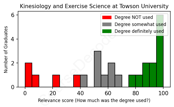 First, some facts. Of the Kinesiology and Exercise Science graduates from Towson University we've analyzed , here's how many have used (or NOT used) their degree in their career: