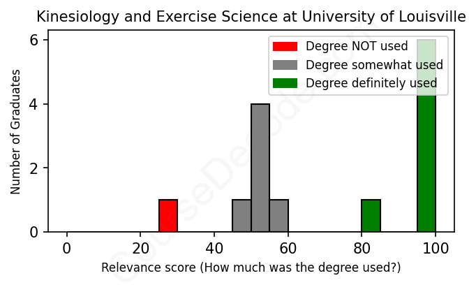 First, some facts. Of the Kinesiology and Exercise Science graduates from University of Louisville we've analyzed , here's how many have used (or NOT used) their degree in their career: