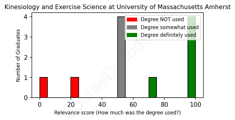 First, some facts. Of the Kinesiology and Exercise Science graduates from University of Massachusetts Amherst we've analyzed , here's how many have used (or NOT used) their degree in their career: