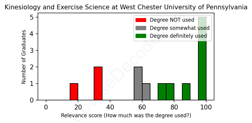 First, some facts. Of the Kinesiology and Exercise Science graduates from West Chester University of Pennsylvania we've analyzed , here's how many have used (or NOT used) their degree in their career:
