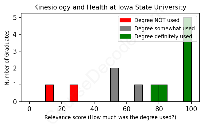 First, some facts. Of the Kinesiology and Health graduates from Iowa State University we've analyzed , here's how many have used (or NOT used) their degree in their career: