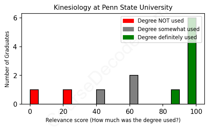 First, some facts. Of the Kinesiology graduates from Penn State University we've analyzed , here's how many have used (or NOT used) their degree in their career: