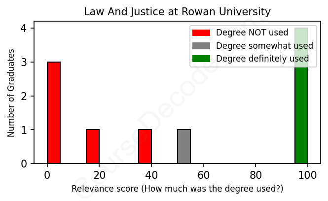 First, some facts. Of the Law And Justice graduates from Rowan University we've analyzed , here's how many have used (or NOT used) their degree in their career: