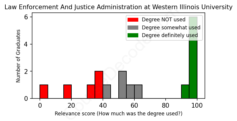 First, some facts. Of the Law Enforcement And Justice Administration graduates from Western Illinois University we've analyzed , here's how many have used (or NOT used) their degree in their career: