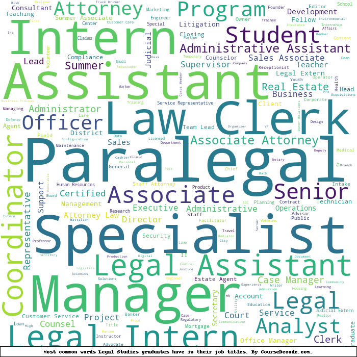 Here is a visual representation of the most common words in job titles for Legal Studies graduates: