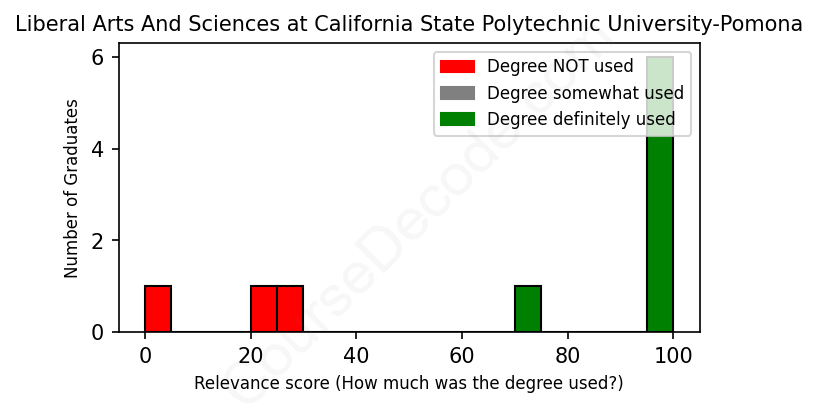 First, some facts. Of the Liberal Arts And Sciences graduates from California State Polytechnic University-Pomona we've analyzed , here's how many have used (or NOT used) their degree in their career:
