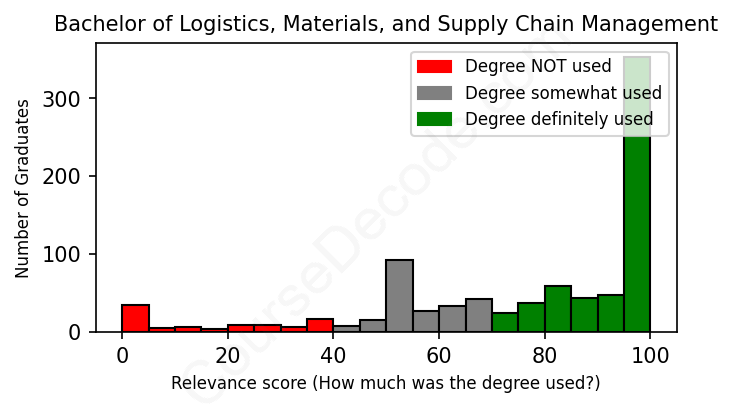 First, some facts. Of the Logistics, Materials, and Supply Chain Management graduates we've analyzed , here's how many have used (or NOT used) their degree in their career: