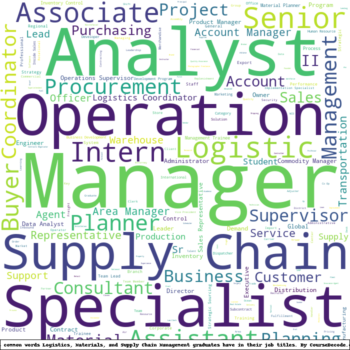 Here is a visual representation of the most common words in job titles for Logistics, Materials, and Supply Chain Management graduates: