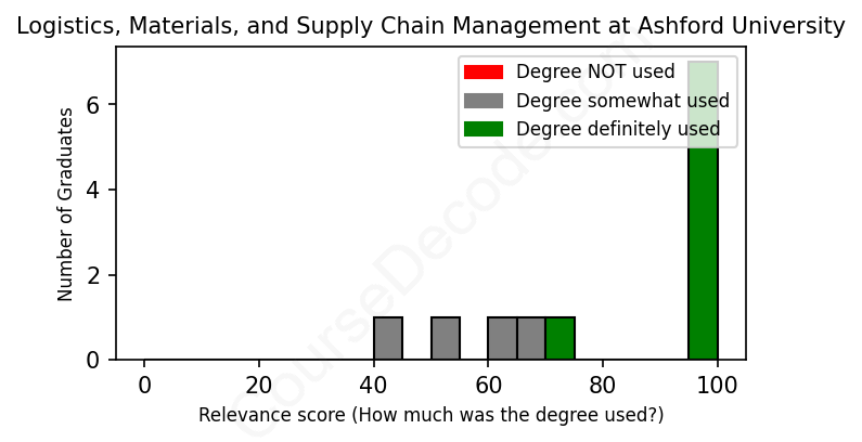 First, some facts. Of the Logistics, Materials, and Supply Chain Management graduates from Ashford University we've analyzed , here's how many have used (or NOT used) their degree in their career:
