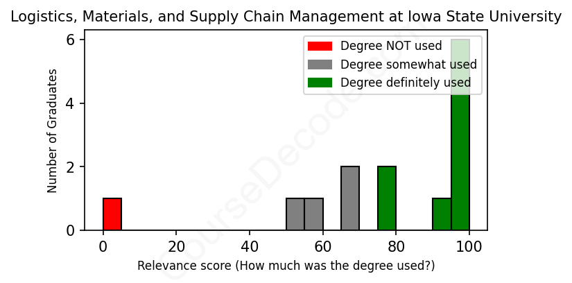 First, some facts. Of the Logistics, Materials, and Supply Chain Management graduates from Iowa State University we've analyzed , here's how many have used (or NOT used) their degree in their career:
