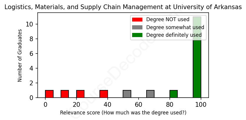 First, some facts. Of the Logistics, Materials, and Supply Chain Management graduates from University of Arkansas we've analyzed , here's how many have used (or NOT used) their degree in their career: