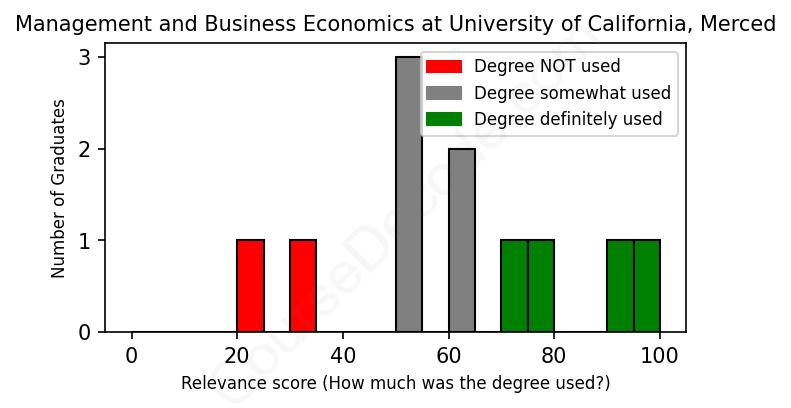 First, some facts. Of the Management and Business Economics graduates from University of California, Merced we've analyzed , here's how many have used (or NOT used) their degree in their career: