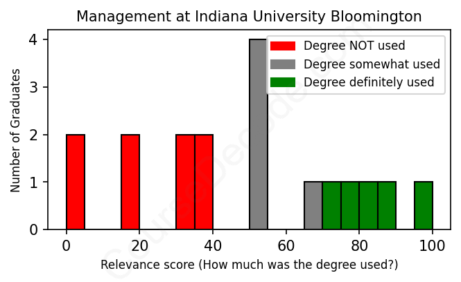 First, some facts. Of the Management graduates from Indiana University Bloomington we've analyzed , here's how many have used (or NOT used) their degree in their career: