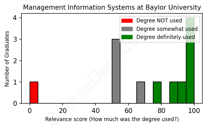 First, some facts. Of the Management Information Systems graduates from Baylor University we've analyzed , here's how many have used (or NOT used) their degree in their career: