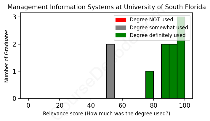 First, some facts. Of the Management Information Systems graduates from University of South Florida we've analyzed , here's how many have used (or NOT used) their degree in their career: