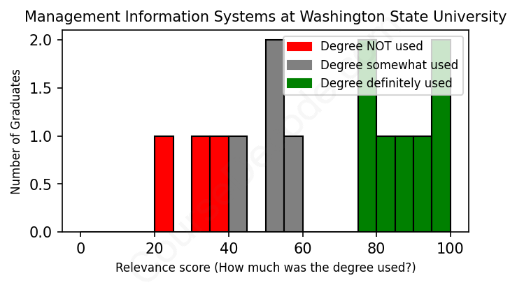 First, some facts. Of the Management Information Systems graduates from Washington State University we've analyzed , here's how many have used (or NOT used) their degree in their career: