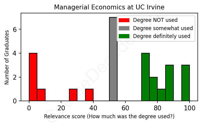 First, some facts. Of the Managerial Economics graduates from UC Irvine we've analyzed , here's how many have used (or NOT used) their degree in their career: