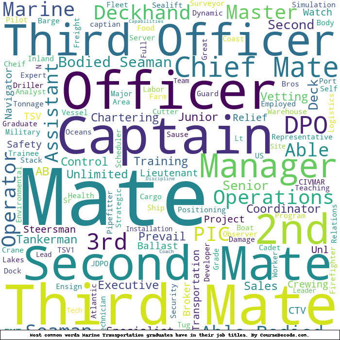 Here is a visual representation of the most common words in job titles for Marine Transportation graduates:
