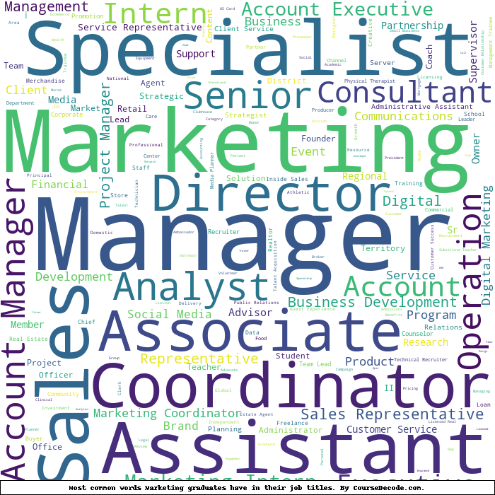 Here is a visual representation of the most common words in job titles for Marketing graduates: