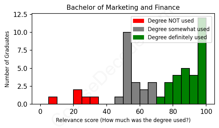 First, some facts. Of the Marketing and Finance graduates we've analyzed , here's how many have used (or NOT used) their degree in their career: