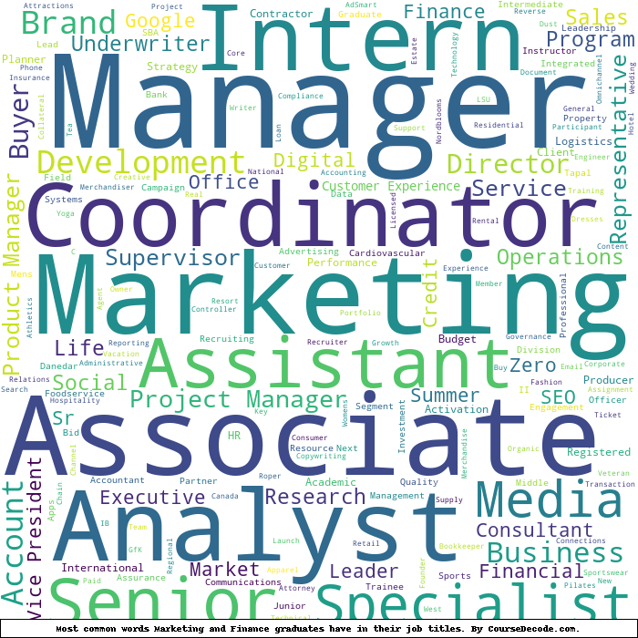 Here is a visual representation of the most common words in job titles for Marketing and Finance graduates: