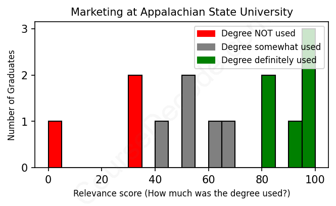 First, some facts. Of the Marketing graduates from Appalachian State University we've analyzed , here's how many have used (or NOT used) their degree in their career: