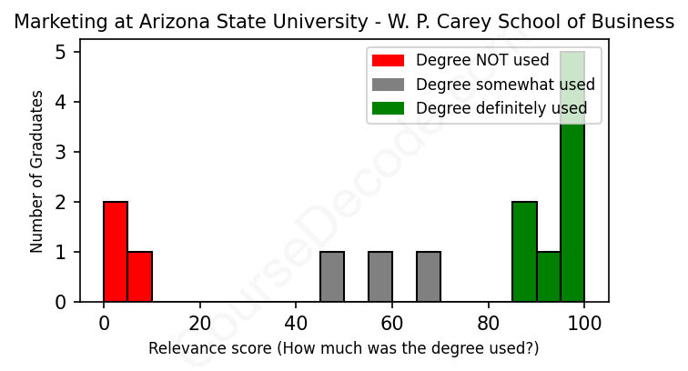 First, some facts. Of the Marketing graduates from Arizona State University - W. P. Carey School of Business we've analyzed , here's how many have used (or NOT used) their degree in their career: