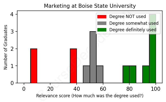 First, some facts. Of the Marketing graduates from Boise State University we've analyzed , here's how many have used (or NOT used) their degree in their career: