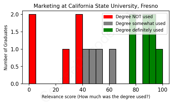 First, some facts. Of the Marketing graduates from California State University, Fresno we've analyzed , here's how many have used (or NOT used) their degree in their career: