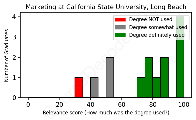 First, some facts. Of the Marketing graduates from California State University-Long Beach we've analyzed , here's how many have used (or NOT used) their degree in their career: