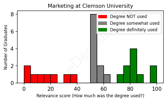 First, some facts. Of the Marketing graduates from Clemson University we've analyzed , here's how many have used (or NOT used) their degree in their career: