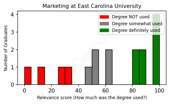 First, some facts. Of the Marketing graduates from East Carolina University we've analyzed , here's how many have used (or NOT used) their degree in their career: