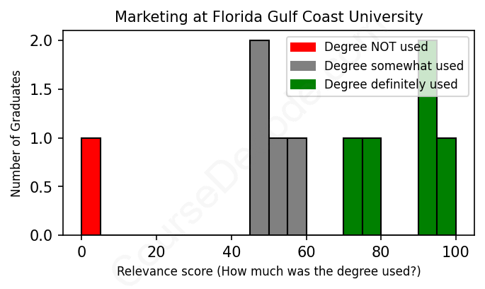 First, some facts. Of the Marketing graduates from Florida Gulf Coast University we've analyzed , here's how many have used (or NOT used) their degree in their career: