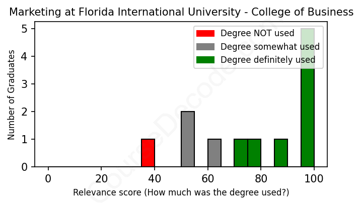 First, some facts. Of the Marketing graduates from Florida International University - College of Business we've analyzed , here's how many have used (or NOT used) their degree in their career: