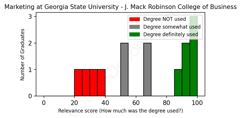 First, some facts. Of the Marketing graduates from Georgia State University - J. Mack Robinson College of Business we've analyzed , here's how many have used (or NOT used) their degree in their career: