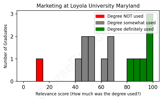 First, some facts. Of the Marketing graduates from Loyola University Maryland we've analyzed , here's how many have used (or NOT used) their degree in their career: