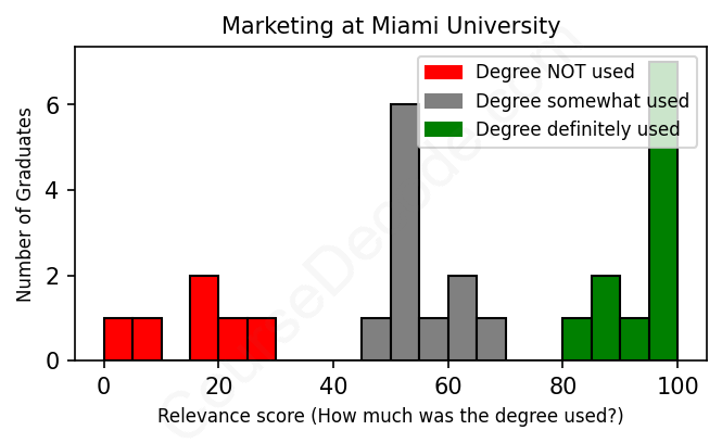 First, some facts. Of the Marketing graduates from Miami University we've analyzed , here's how many have used (or NOT used) their degree in their career: