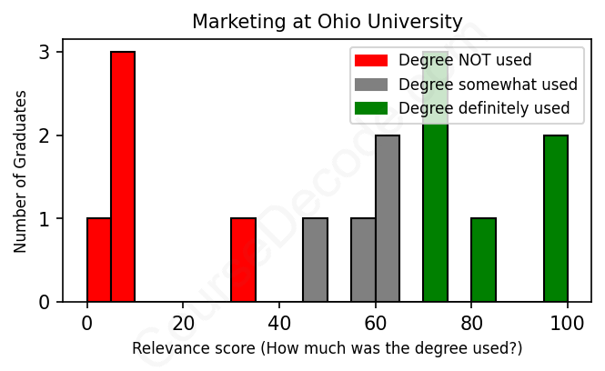 First, some facts. Of the Marketing graduates from Ohio University we've analyzed , here's how many have used (or NOT used) their degree in their career: