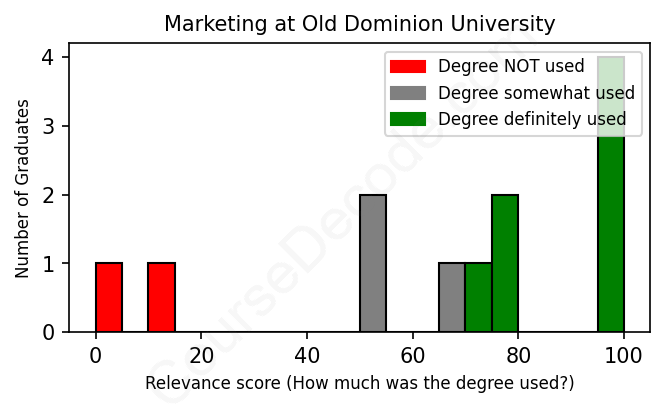 First, some facts. Of the Marketing graduates from Old Dominion University we've analyzed , here's how many have used (or NOT used) their degree in their career:
