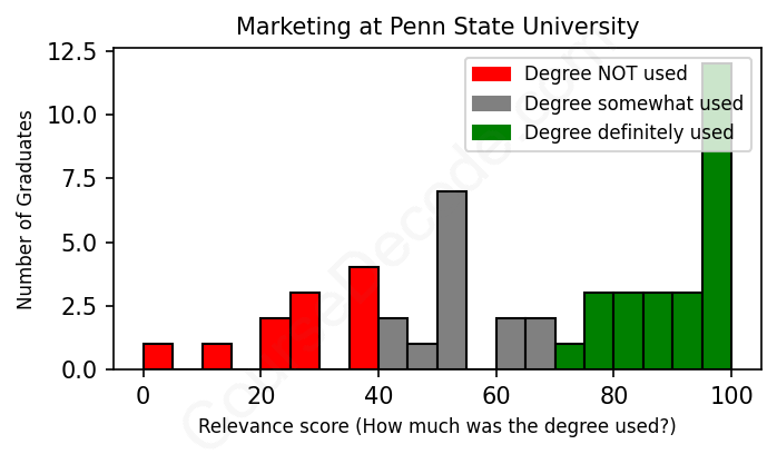 First, some facts. Of the Marketing graduates from Penn State University we've analyzed , here's how many have used (or NOT used) their degree in their career: