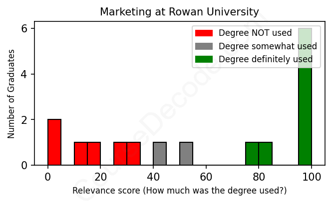 First, some facts. Of the Marketing graduates from Rowan University we've analyzed , here's how many have used (or NOT used) their degree in their career: