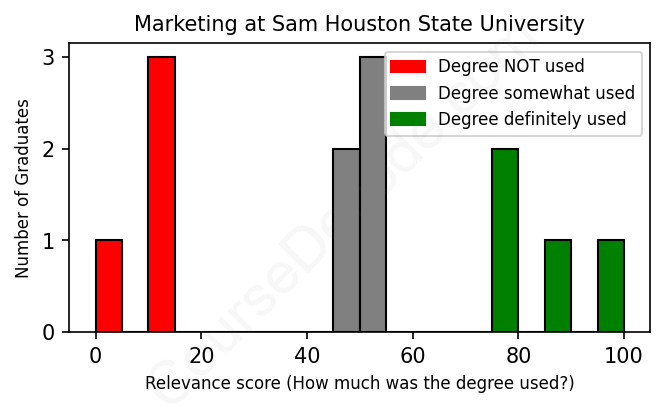 First, some facts. Of the Marketing graduates from Sam Houston State University we've analyzed , here's how many have used (or NOT used) their degree in their career: