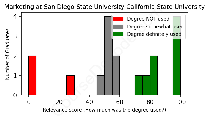 First, some facts. Of the Marketing graduates from San Diego State University-California State University we've analyzed , here's how many have used (or NOT used) their degree in their career: