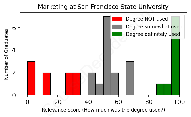 First, some facts. Of the Marketing graduates from San Francisco State University we've analyzed , here's how many have used (or NOT used) their degree in their career:
