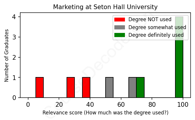 First, some facts. Of the Marketing graduates from Seton Hall University we've analyzed , here's how many have used (or NOT used) their degree in their career: