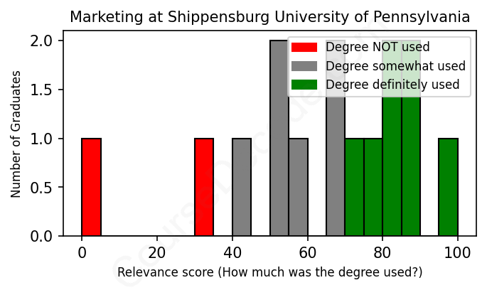 First, some facts. Of the Marketing graduates from Shippensburg University of Pennsylvania we've analyzed , here's how many have used (or NOT used) their degree in their career: