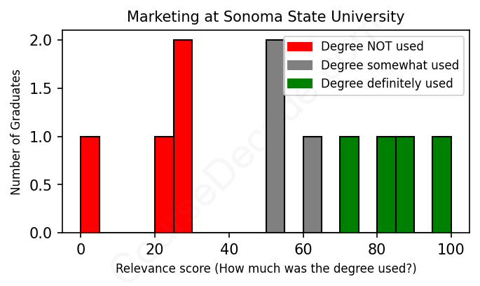 First, some facts. Of the Marketing graduates from Sonoma State University we've analyzed , here's how many have used (or NOT used) their degree in their career: