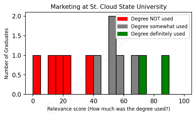First, some facts. Of the Marketing graduates from St. Cloud State University we've analyzed , here's how many have used (or NOT used) their degree in their career: